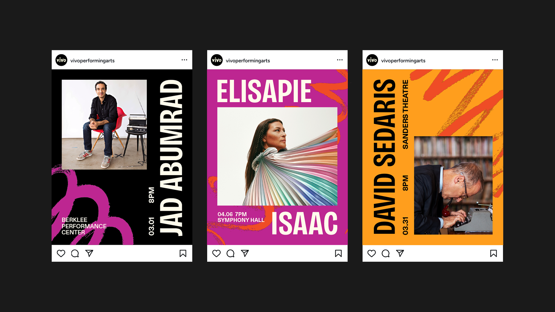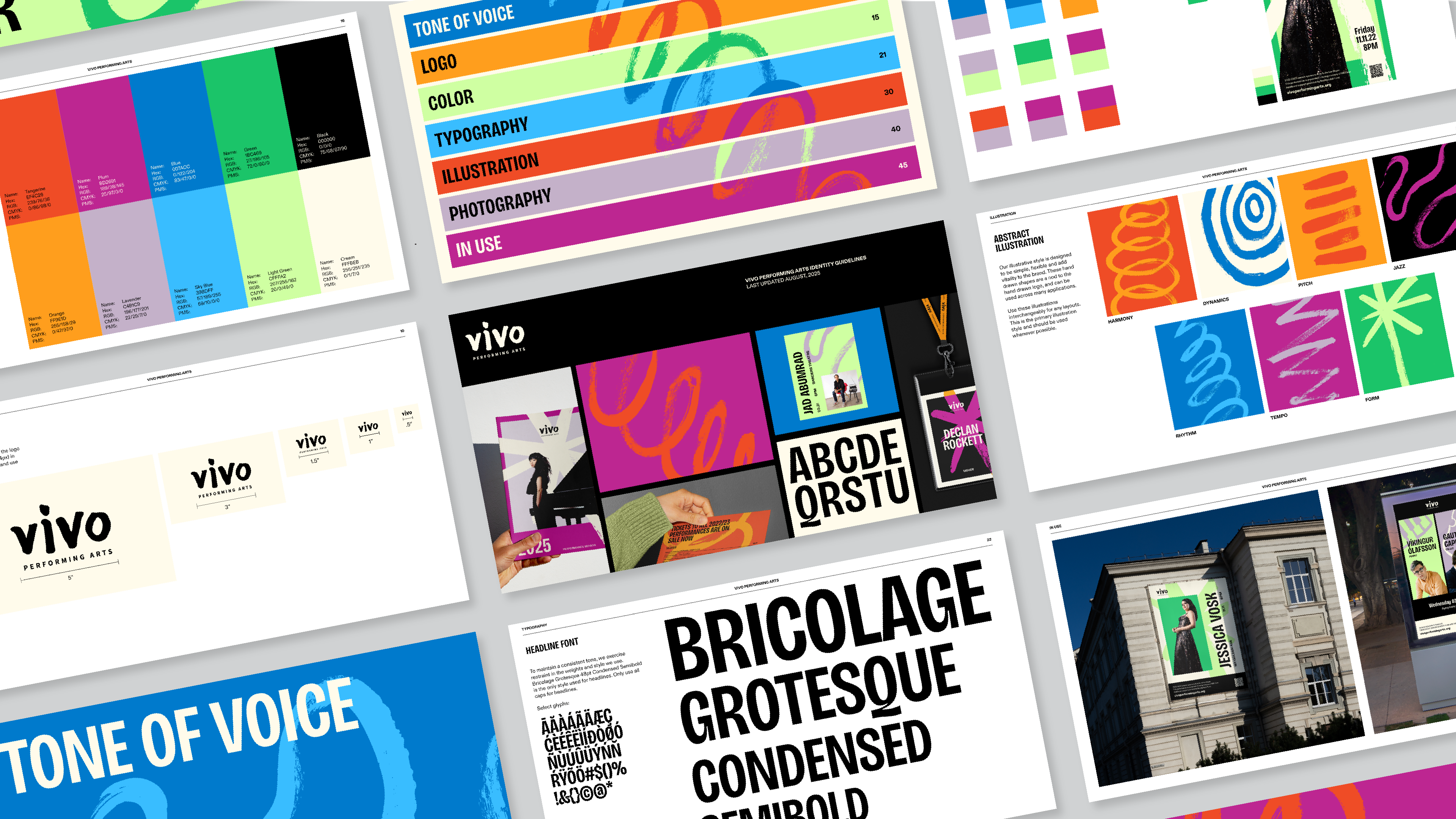 The rebrand centers on expressing the emotional, kinetic connection between performers and audiences through a bold, contemporary design system. Vivo’s identity combines expressive typography, vibrant non-hierarchical color, and hand-painted illustrations created in response to music, prioritizing feeling over form. Together, these elements create a flexible, energetic visual language that feels alive, inclusive, and resonant with a wider range of audiences.